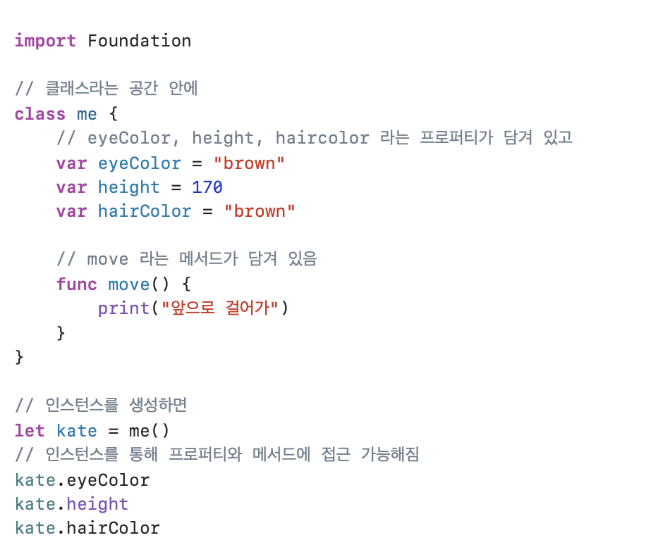 Class ๋ฅผ ๊ฐ๋จํ ๋น์ ํ์๋ฉด ์ํ์ด๋ผ๊ณ ํ ์ ์์ต๋๋ค. ์ํ์๋ ๋ฐฅ์ ๋ด๋ ๊ณณ, ๊ตญ์ ๋ด๋ ๊ณณ, ๋ฐ์ฐฌ์ ๋ด๋ ๊ณณ์ด ์๋ ๊ฒ์ฒ๋ผ, Class ์๋ ํ๋กํผํฐ์ ๋ฉ์๋๋ฅผ ๋ด์ ์ ์๋ ๊ณต๊ฐ์ด ์์ต๋๋ค. ์ฌ๊ธฐ์ ํ๋กํผํฐ๋ ํด๋์ค ๋ด๋ถ์ ์ ์ธ๋ ๋ณ์๋ฅผ ์๋ฏธํ๊ณ ๋ฉ์๋๋ ํจ์๋ฅผ ์๋ฏธํฉ๋๋ค. ๊ทธ๋ฆฌ๊ณ ์ด๋ฐ ํด๋์ค๋ฅผ ์ฌ์ฉํด์ ์ฝ๋ฉํ๋ ๊ฒ์ ๊ฐ์ฒด์งํฅ ํ๋ก๊ทธ๋๋ฐ์ด๋ผ๊ณ ํฉ๋๋ค. iOS UIKit Framework๋ ๋๋ถ๋ถ ํด๋์ค๋ก ๊ตฌํ๋์ด ์์ต๋๋ค.